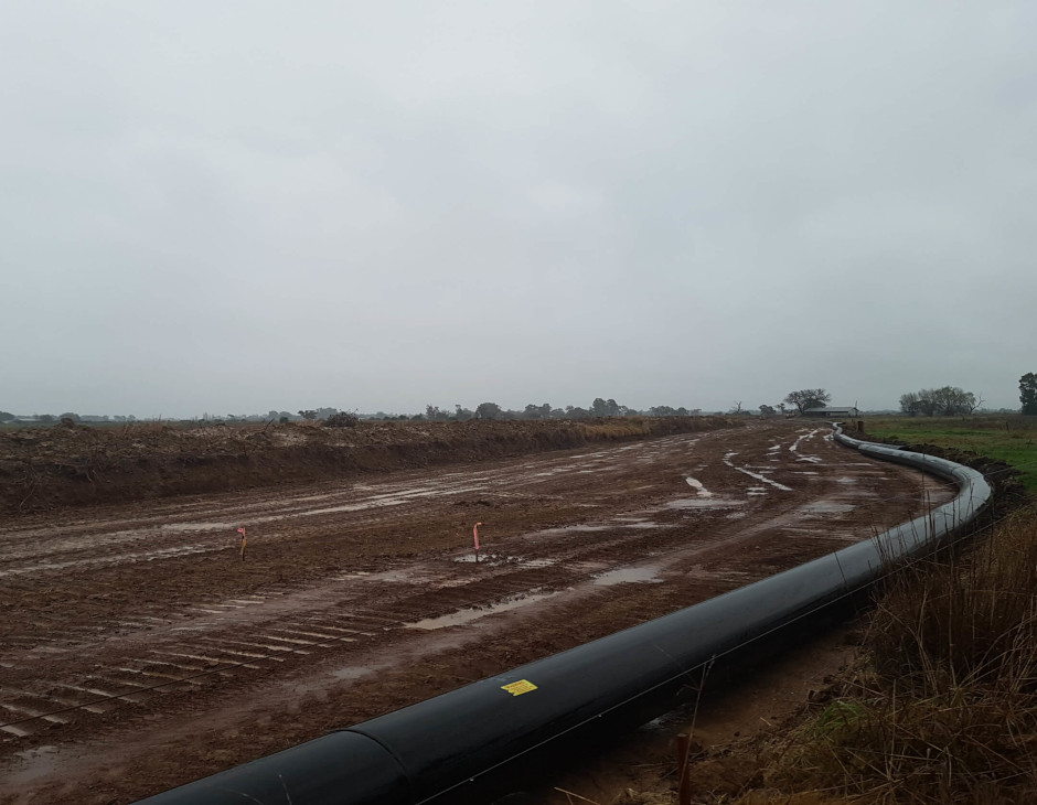 Exposed to the harsh Australian sun, the open water channels were evaporating at a rapid rate. The solution was to replace these channels with underground pipes. The channels were drained, backfilled with soil and trenched for the pipeline installation. Excavation occurred for the primary purpose of laying the pipelines and once dug, the pipeline would sit flush underground. Problems were made apparent after the unexpected rain had left the already unstable foundation wet and boggy. Due to this, the excavator was unable to dig a trench as the soft soil caused havoc to its tracks.