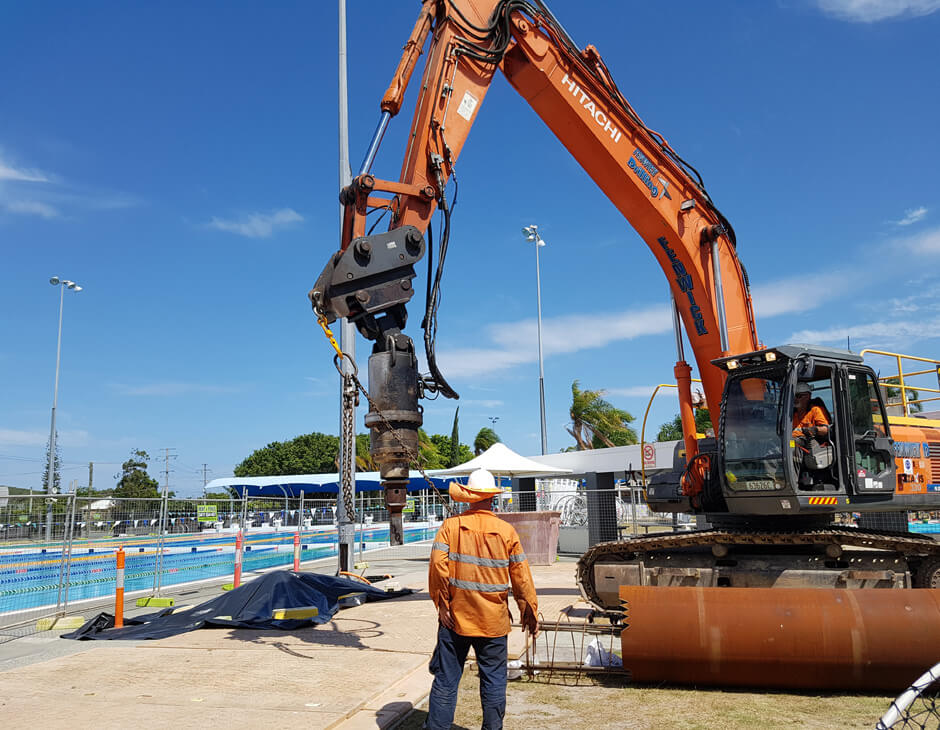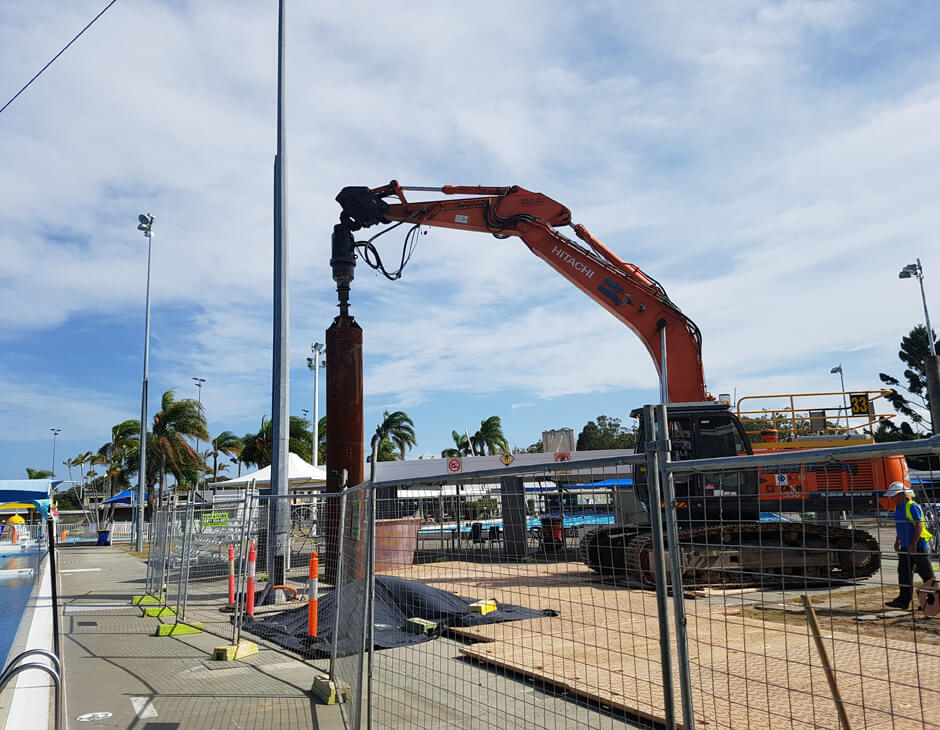 Lighting experts GM Poles were tasked with the supply and installation of lighting upgrades for the City of Gold Coasts’ Miami Aquatic Centre. The project involved moving a 33-tonne Hitachi Zaxis excavator across sensitive concrete flooring and protecting buried high-pressure water pipes and tanks.