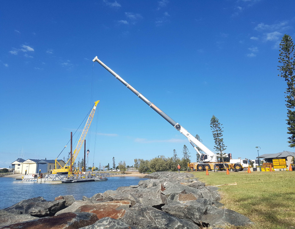 Installing a pontoon at Raby Bay required the use of a crane positioned close to the water's edge. Working in a coastal environment presents unique challenges, particularly regarding ground stability.