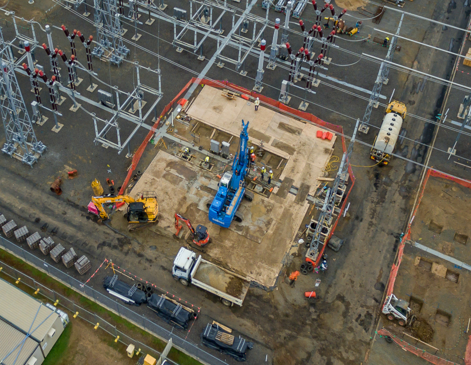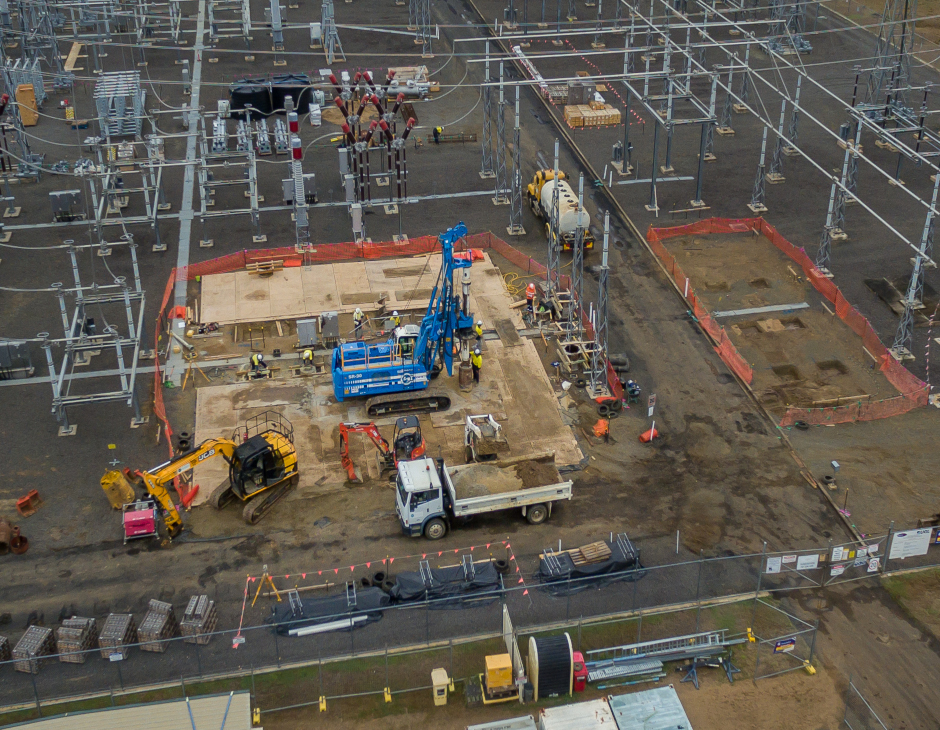 The project objective was to rebuild a substation site in a high-voltage environment without undertaking major resurfacing works. This presented a significant challenge, further complicated by heavy rainfall on-site and a difficult sandy clay subsurface.