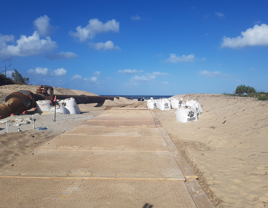 The Sunshine Coast Airport Expansion Project required access across Marcoola Beach for pipeline construction. Dura-Base mats provided a non-slip, temporary road that protected endangered sea turtle nesting grounds and eliminated the need for imported fill.